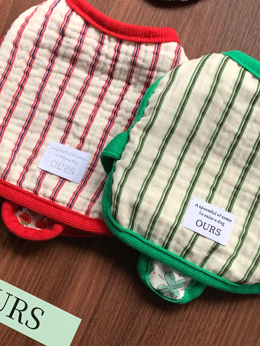 뒷면은 수박처럼 잔잔한 무드의 3중 요루 거즈 프렌치 스트라이프로 편안하게 제작했어요 :)