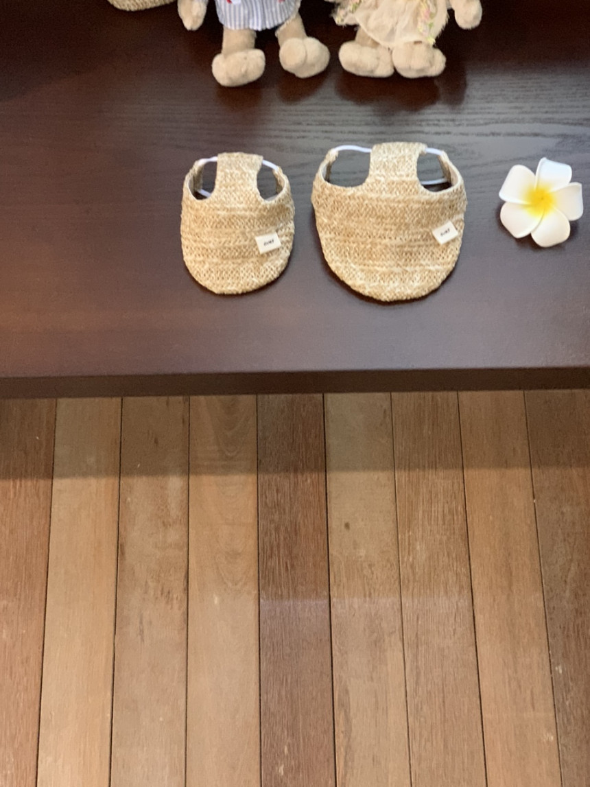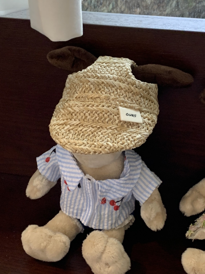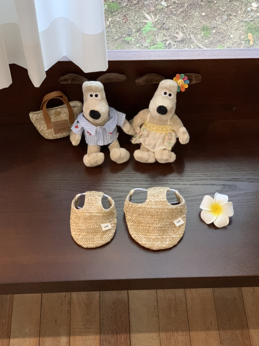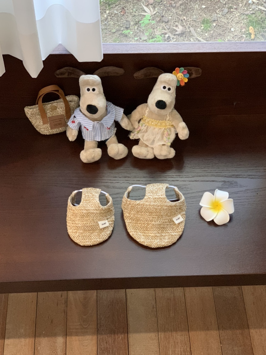 썬캡은 왕골 느낌 내준 원단으로 만들었어요.