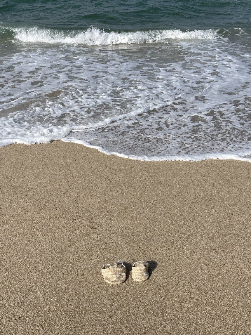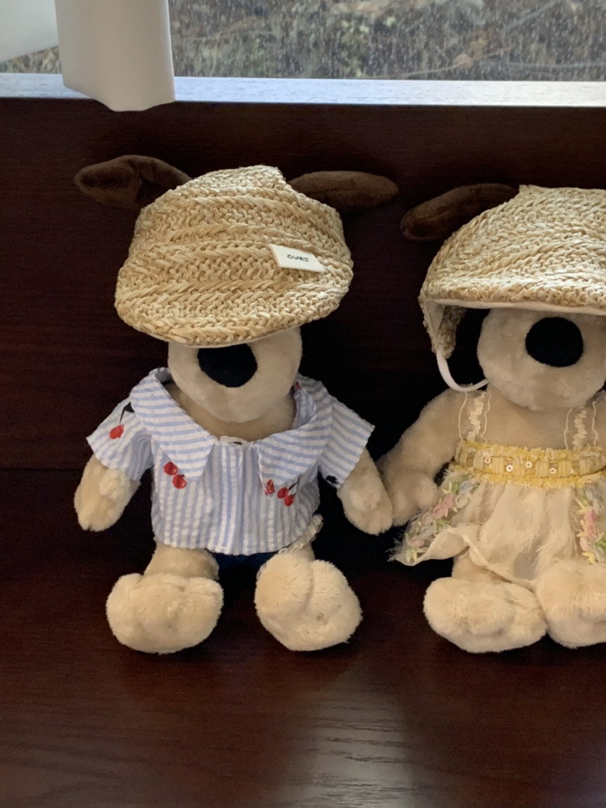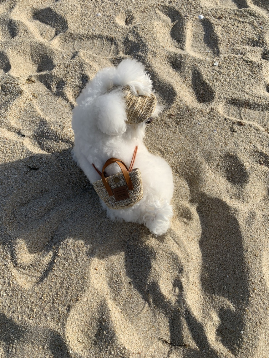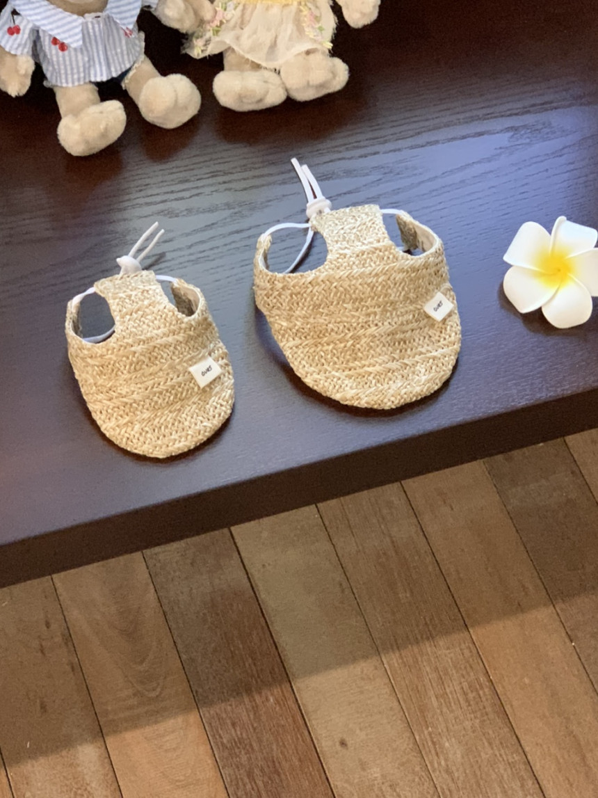 썬캡은 왕골 느낌 내준 원단으로 만들었어요.