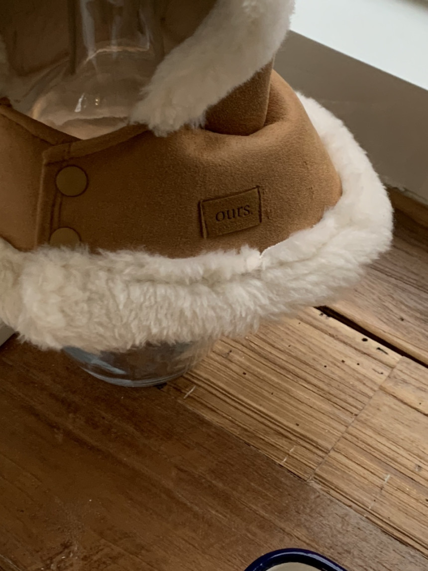 -소재: 겉 스웨이드원단 + 안감 (폴리 50 + 아크릴 50) 국산 페이크 양모 원단