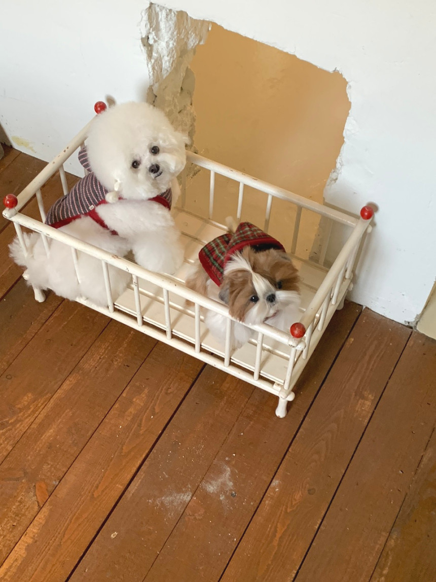 (산책시에는 별도의 목줄이나 하네스를 착용해야 합니다)