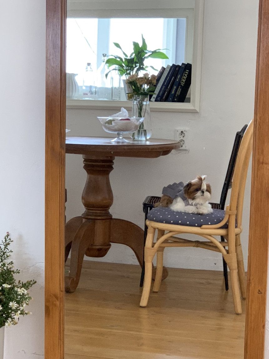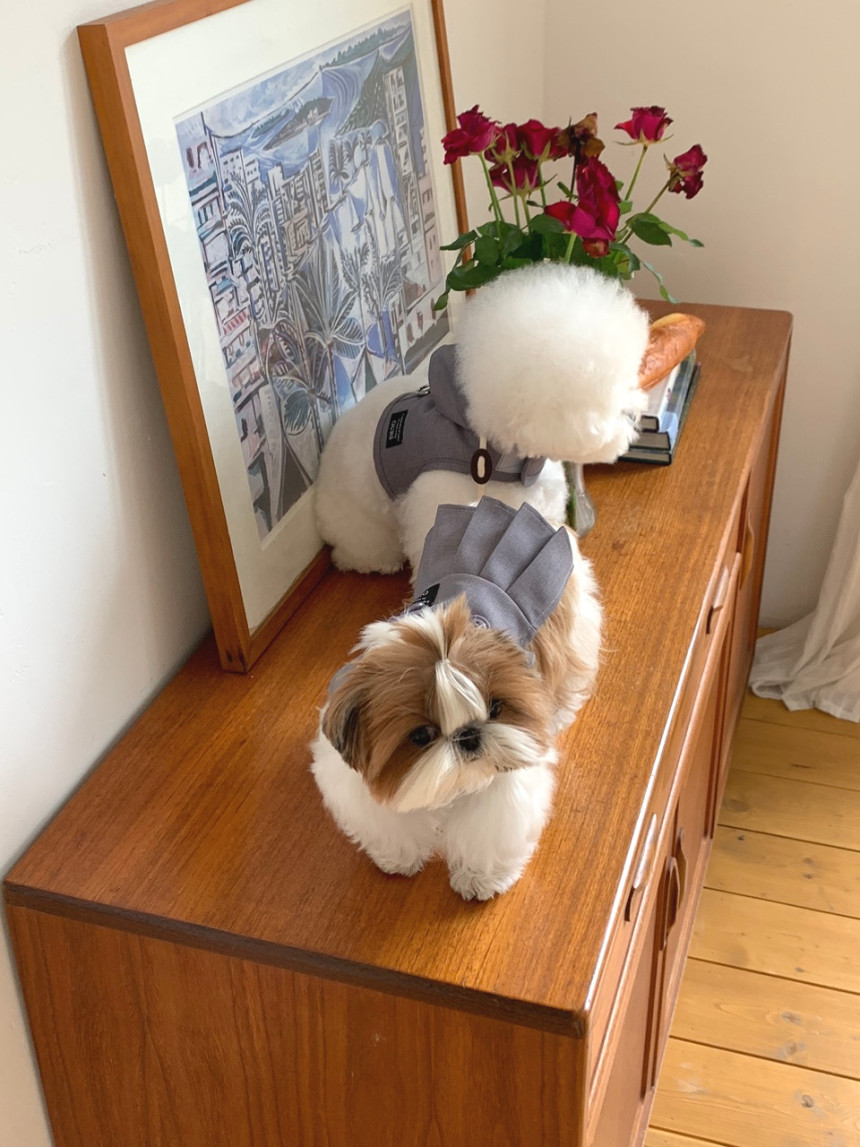 (산책시에는 별도의 목줄이나 하네스를 착용해야 합니다)