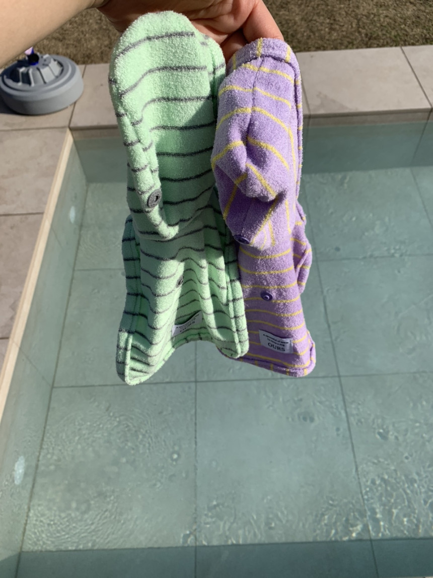 신나게 물놀이 하고, 테리타올 뷔스티에 입고 털 말렸어요!