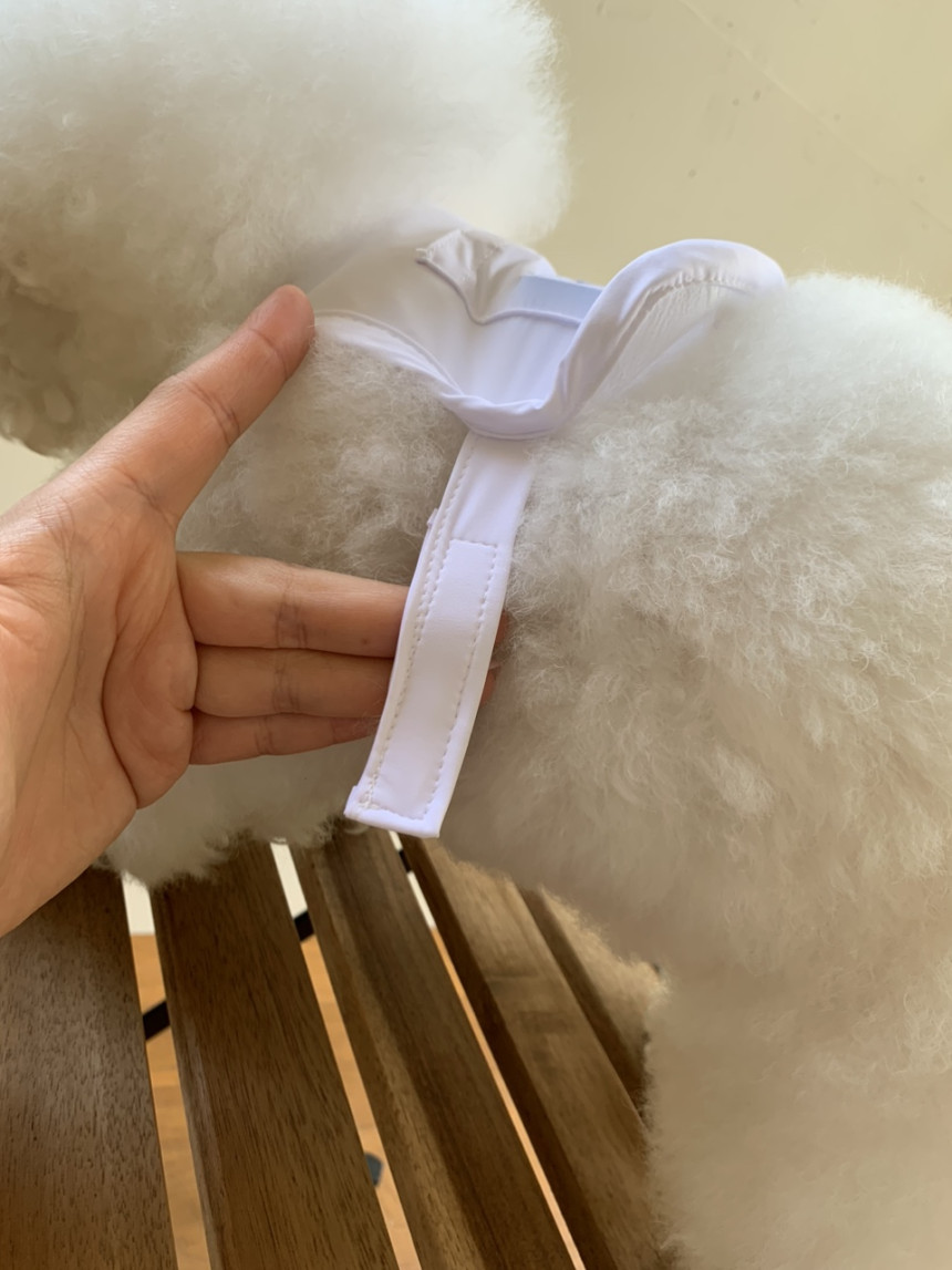 가슴 부분은 찍찍이로 딱 맞게 조여 입힐 수 있어요.