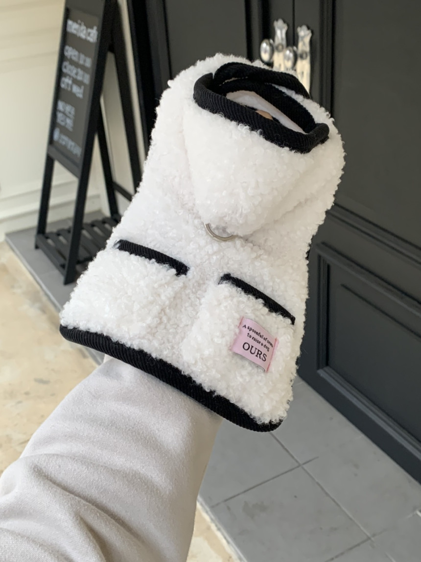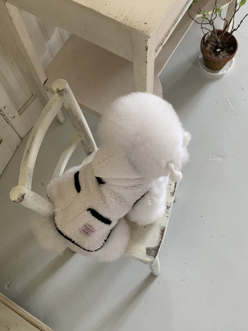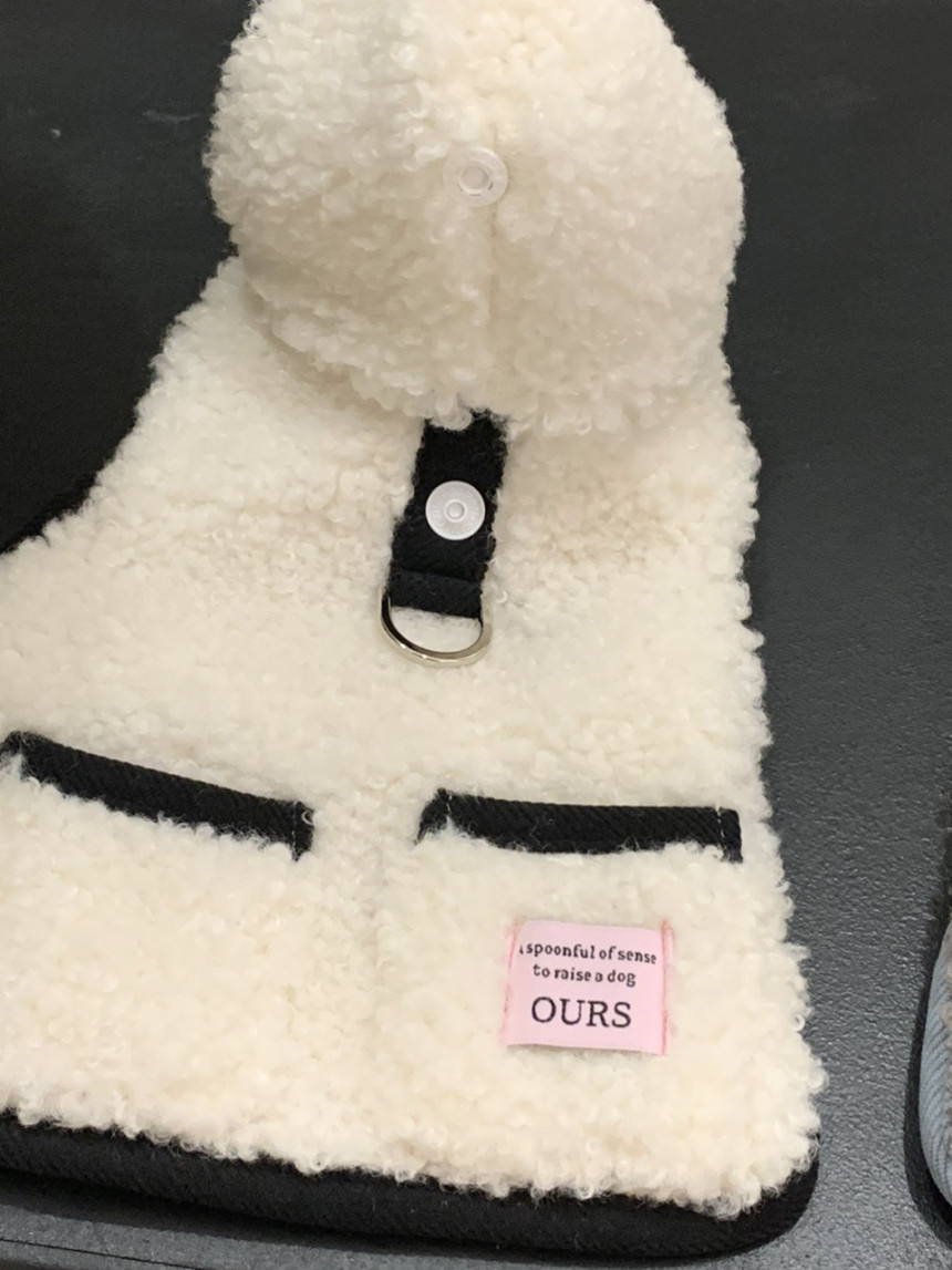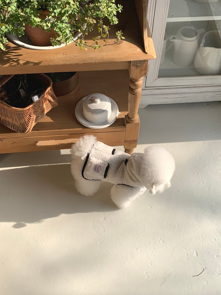 또한 뽀글이 원단이 탄탄하게 잘 나와서 산책 시 당김이 있는 친구들도 옷핏이 쉽게 흐트러지지 않는 점이 장점이에요.