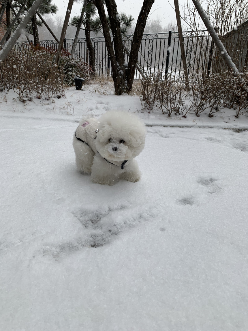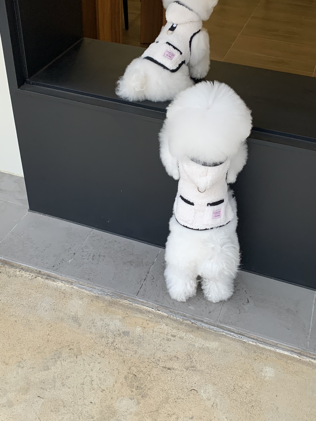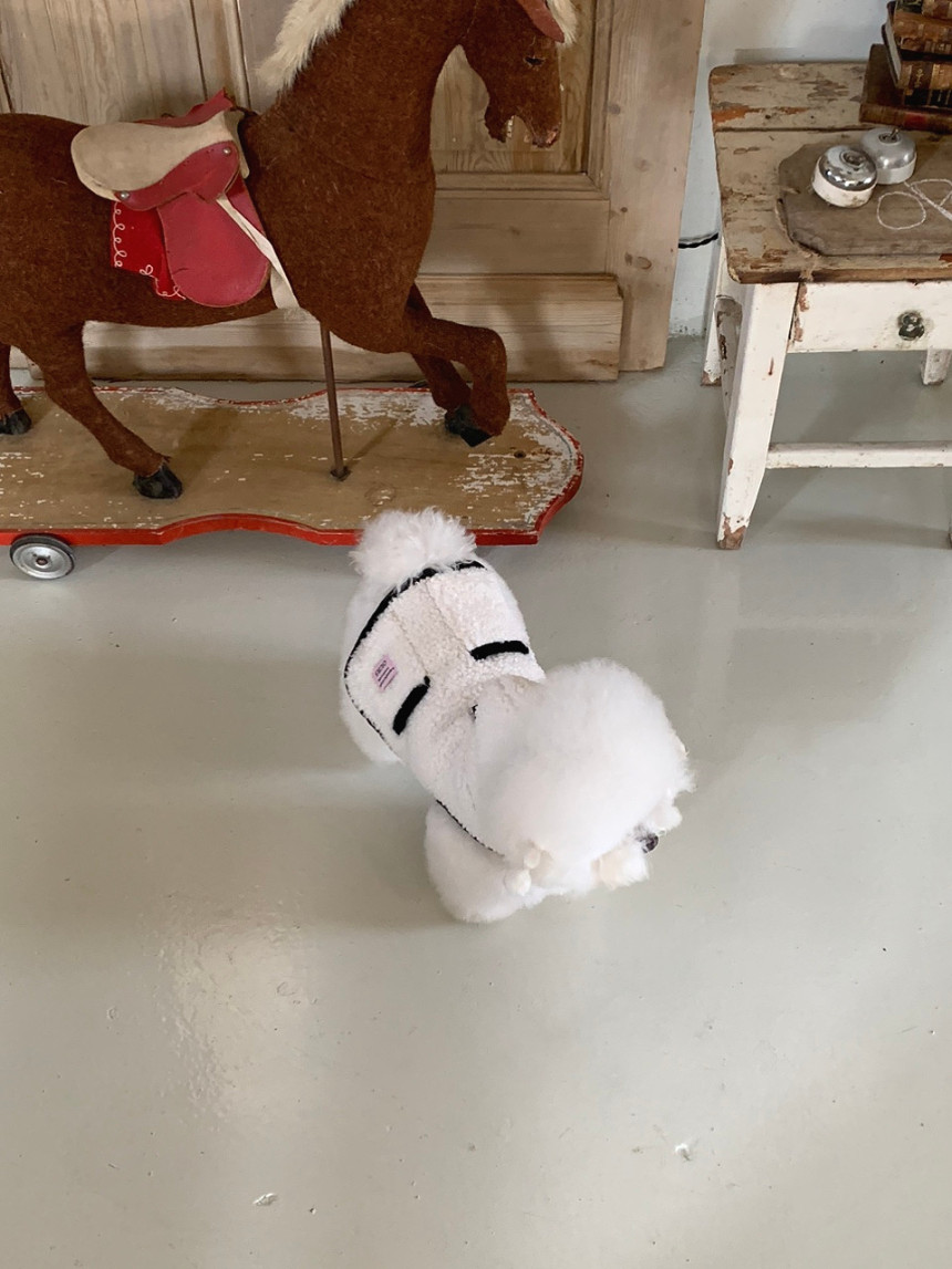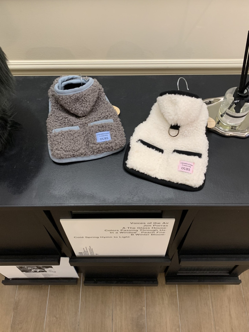 또한 뽀글이 원단이 탄탄하게 잘 나와서 산책 시 당김이 있는 친구들도 옷핏이 쉽게 흐트러지지 않는 점이 장점이에요.