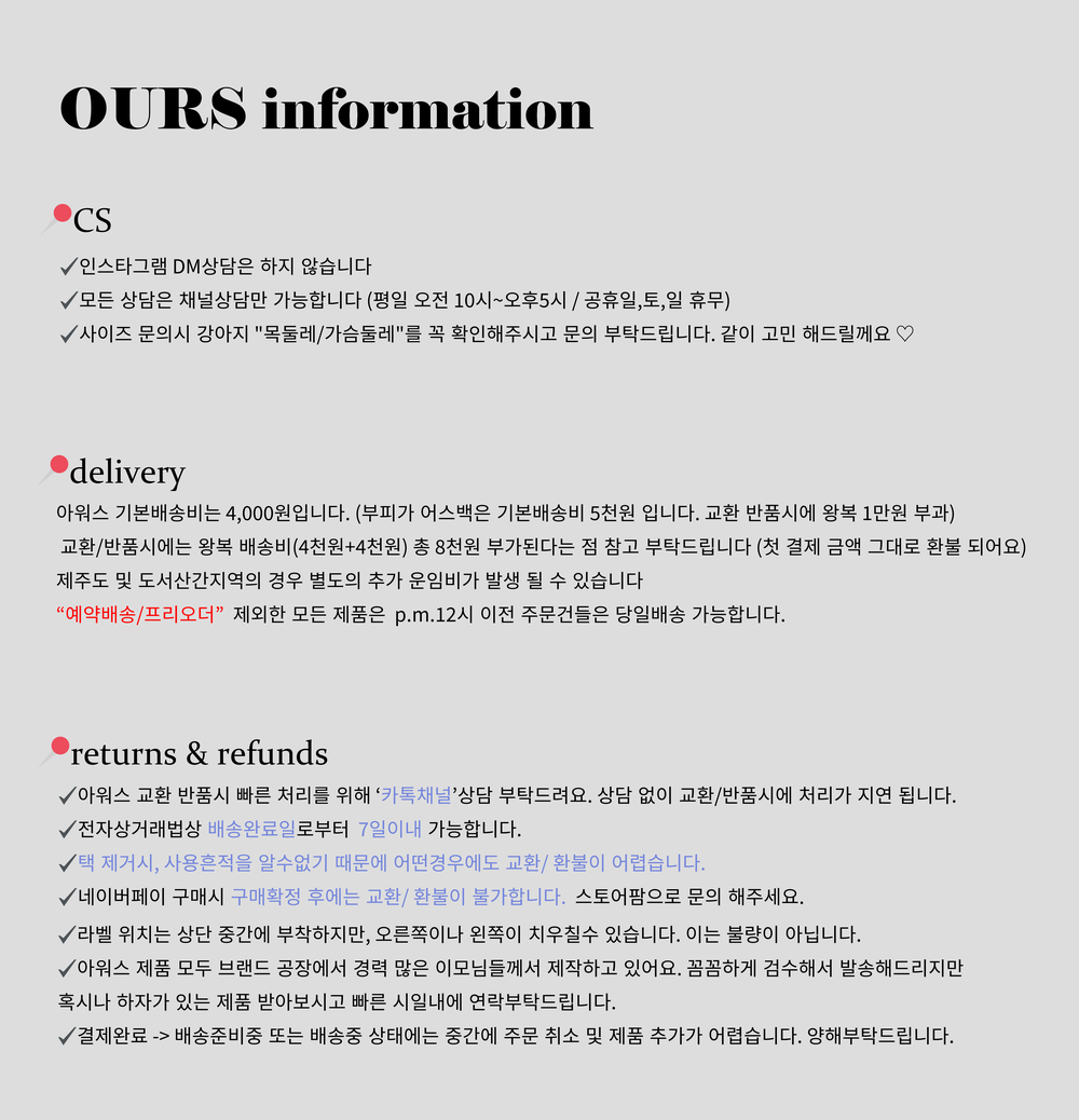 ✔️아워스 무단복제 및 도용 시 민형사상의 법적 처벌을 받을 수 있습니다. 가품 판매 시 경고없는 법적 대응을 진행 예정입니다. 아워스 상표권과 디자인을 도용하지 말아주세요!