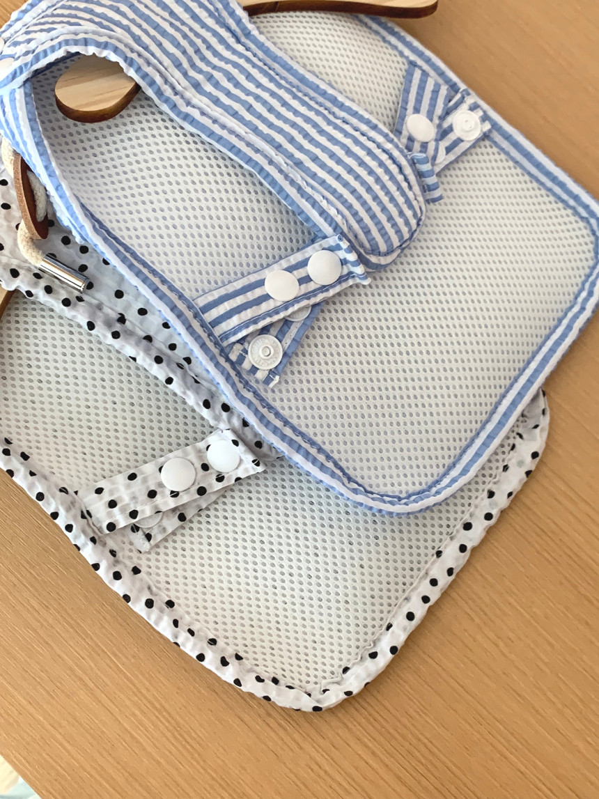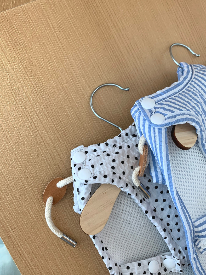 ✔️목, 가슴, 등에 스냅단추가 달려 있어요. 단추는 뜯으실때 손톱으로 살살 뜯어주세요. 단추를 힘껏 뜯으면 옷감이 상하거나 단주가 뜯어질 수 있습니다